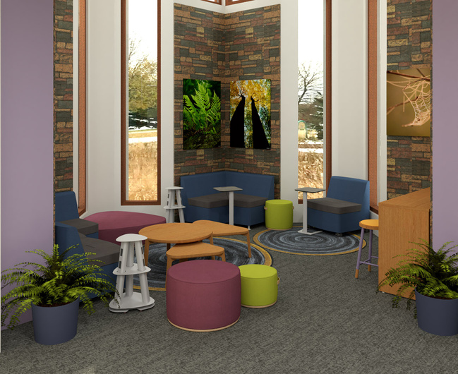 Planned small and large groups spaces are intended to accommodate students' needs, and independent learning structure.